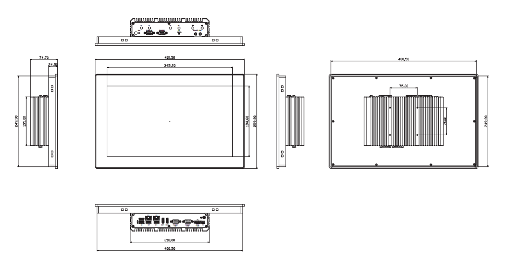 • 15.6英寸全面屏无风扇设计, 前面板符合IP65防水防尘