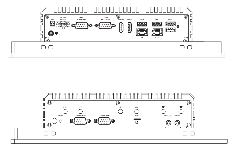 • 支持全面屏十点投射式电容屏, 五线电阻屏 • 支持4个COM, 4个USB, 2个intel千兆网口