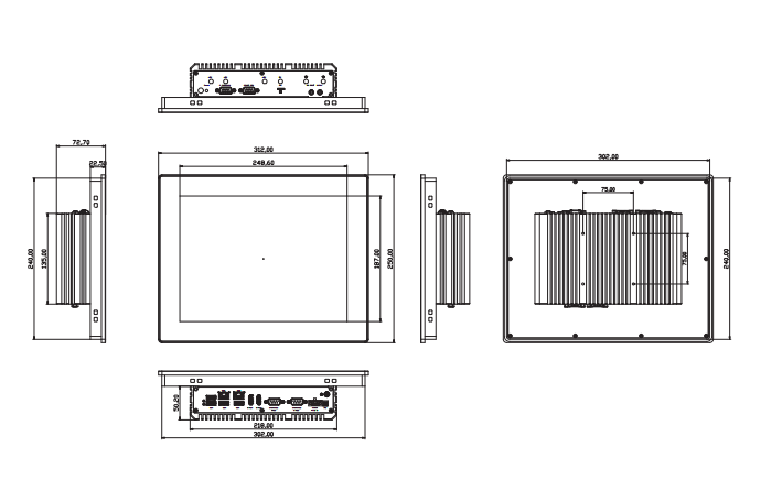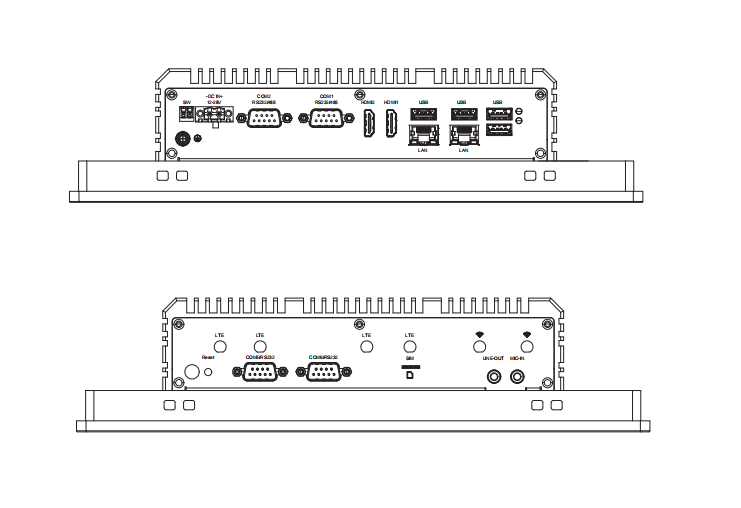• 12.1英寸全面屏无风扇设计,前面板符合IP65防水防尘