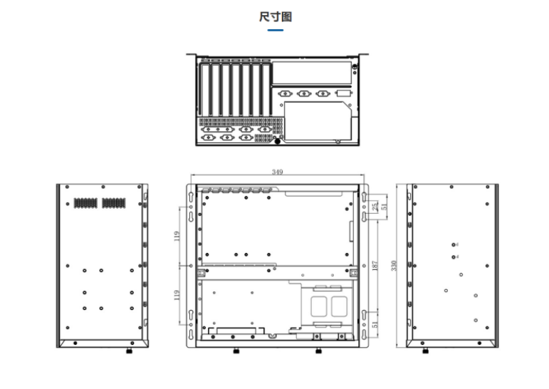 2个前置USB 2.0(选配USB 3.0),后窗扩展8*DB9(串口),1个DB37(并口),1个4Pin凤凰觥子